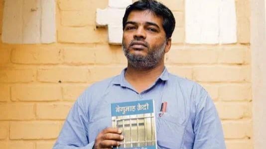 图1. 阿卜杜勒·瓦希德·谢赫与他的乌尔都语书籍《无辜的囚犯》 | 图源:maktoobmedia