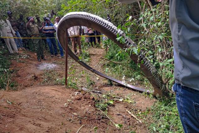 去年,肯尼亚马瓜尼县一枚重达近 500 公斤的金属环从空中落下。图片来源:Anadolu/Getty